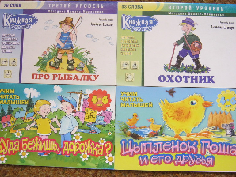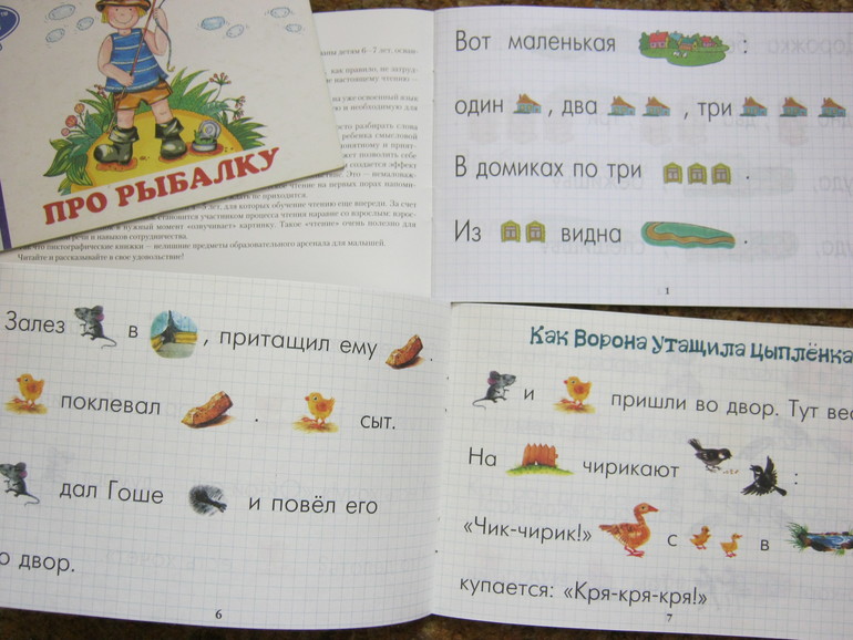 У нас есть вот такие книжки-тренажеры для чтения с картинками-подсказками.