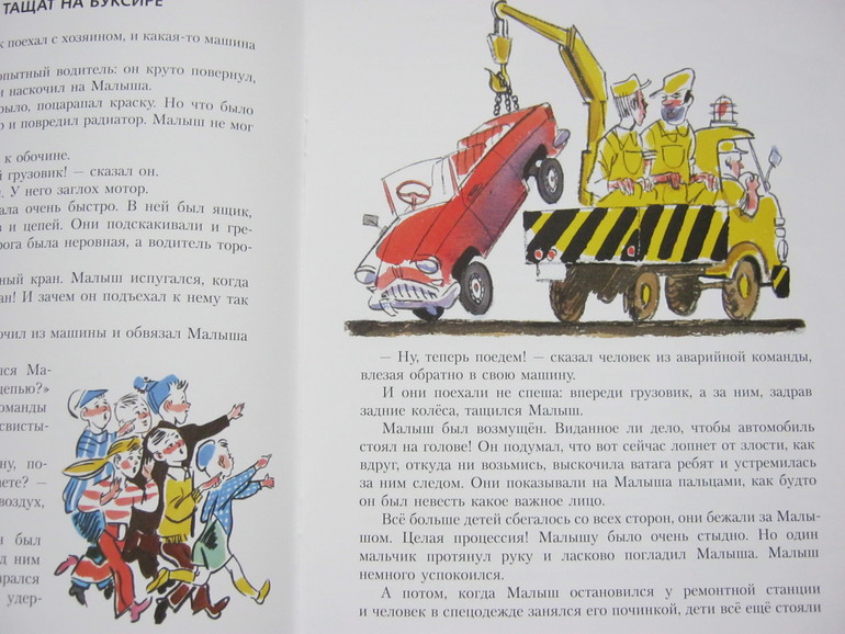 Нам книга понравилась безоговорочно. Все, что кому-то казалось странным, было принято как самое естественное и ни у кого не вызывало ни вопросов, ни недоумения. Дети отнеслись к Малышу очень сочувственно и с большой симпатией. Нам понравились все рассказики - очень трогательно описываются переживания Малыша по самым разным поводам, и эти переживания настолько понятны детям, что я бы назвала книжку пособием по развитию эмпатии. Книга о чувствах маленького автомобильчика оказалась более достоверной и близкой, чем многие книги о людях.