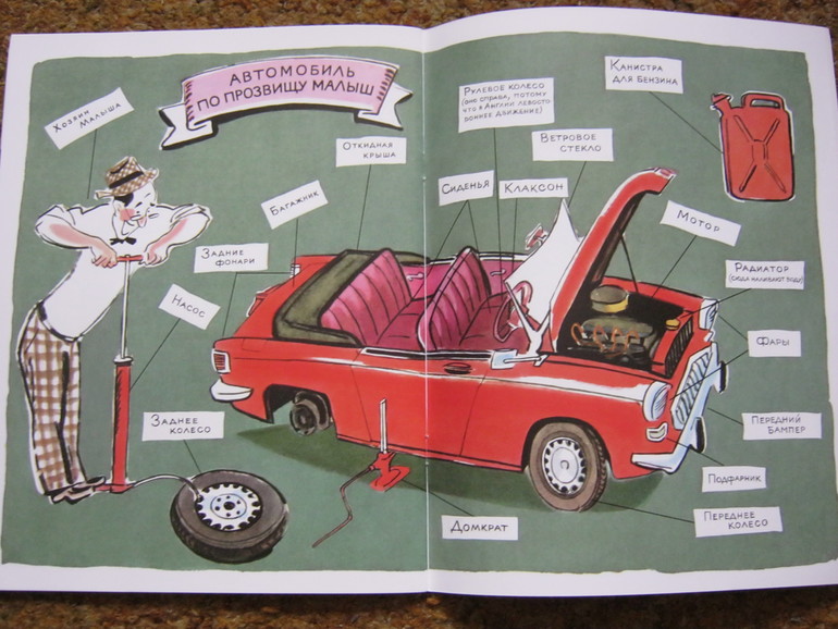 Разворот с названиями частей автомобильчика Малыша прочли все, даже очередь на прочтение занимали )