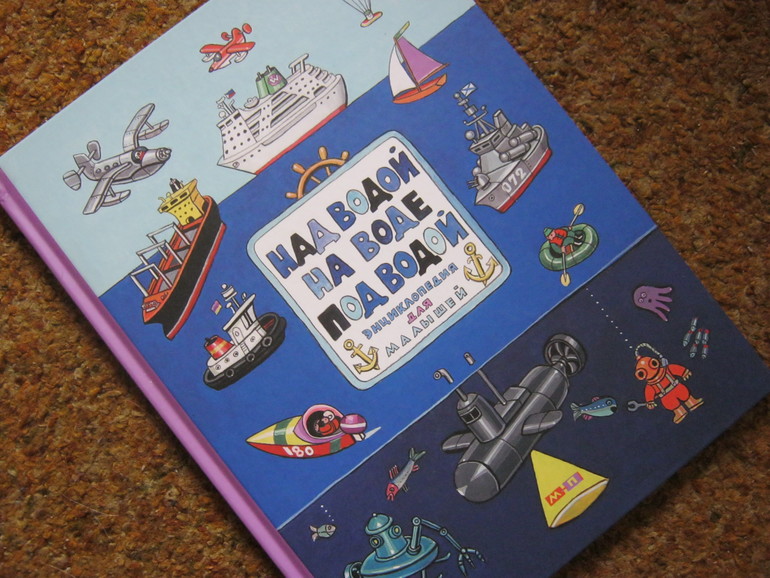 Мне совершенно не нравится шрифт, текст, разноцветные буквы в книге Над водой, на воде, под водой, но иллюстрации сделали свое дело - после многократных перелистываний и запугиваний друг друга глубоководными страшилищами на одной из страниц,