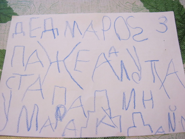 Это попытка составления первых словосочетаний и предложений. С безударными гласными пока, как видите, не очень...