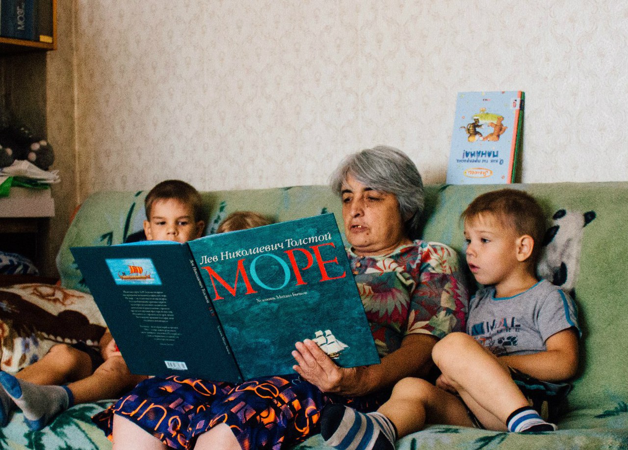 Вот наше первое чтение - это было летом, и Юля потихоньку сняла на телефон. Максим весь в книге, он умеет погружаться вот так, полностью, забывая об окружающем мире.