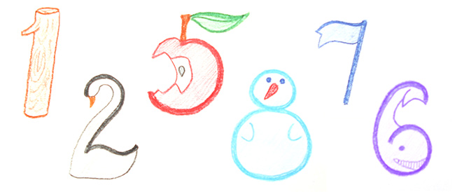 Естественно, для того, чтобы облегчить восприятие детей, лучше всего прорисовывать каждую цифру и образ, который она напоминает, чтобы у ребенка плотно осели в голове все связки образа и числа, и только после этого уже можно пробовать что-то запоминать. Для каждого ребенка образ может быть особенным. Кто-то углядит в числе 7 мотыгу, кто-то скажет, что это похоже на автобусную остановку с навесом, а для кого-то она будет ассоциироваться с козленком или гномиком по аналогии со сказками про семерых козлят и семерых гномов. Пусть дети сами найдут для себя эти ассоциации.