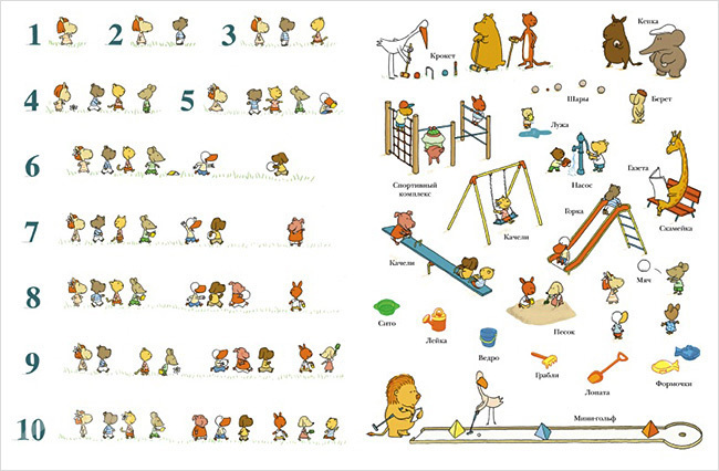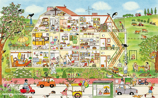 Здесь более "поломанная" перспектива, но зато есть странички, где на белом фоне размещено множество предметов с подписями.
