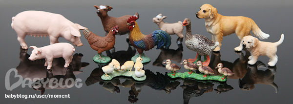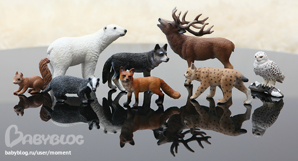 Я уже рассказывала, что у нас их около пятидесяти: дикие животные саванны и пустыни, джунглей, лесные звери, животные фермы и животные севера. Существует множество производителей, выпускающих реалистичных животных. Нам же приглянулись именно эти.