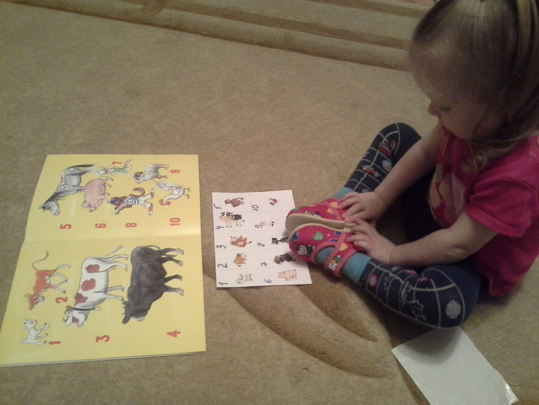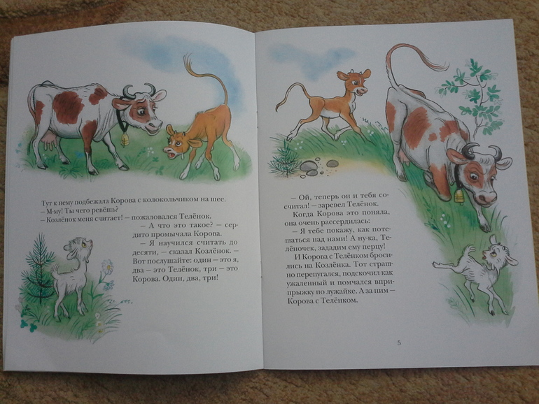 Ну а мой ребенок считает и считает вместе с козлёнком. Счёт до 10 Ульяна и так знала, но теперь она его еще и любит!))) И цифры выучила! Так полюбилась эта книга Ульяне, что пришлось показать одноименный мультик, а на полдник у нас уже недели 2 аудиосказка про козлёнка фоном)