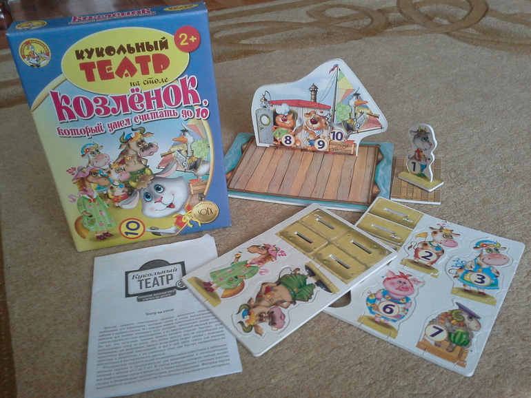 В детском садике было решено дарить детишкам настольные кукольные театры. Сказка - на выбор. Заказывала театры на риде я. Все, конечно же, брали Колобка, Теремок, Репку и гусей-лебедей...я же, как увидела, что есть театр про нашего козлёнка, чуть со стула от радости не упала, и Ульяна получила любимого козлёнка в формате театра)
