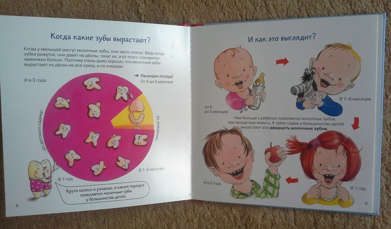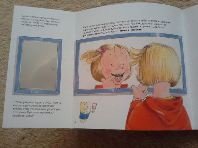 Книга, действительно,для деток постарше. Лет с 4, думаю...Но Ульяне нравится.Она, конечно, перелистывает пока кажущиеся ей неинтересные странички о строении зуба, о молочных и постоянных зубах, о схеме расположения зубов в ротовой полости...В книге еще много чего, я показала лишь маленькую часть. Больше разворотов можно посмотреть на .