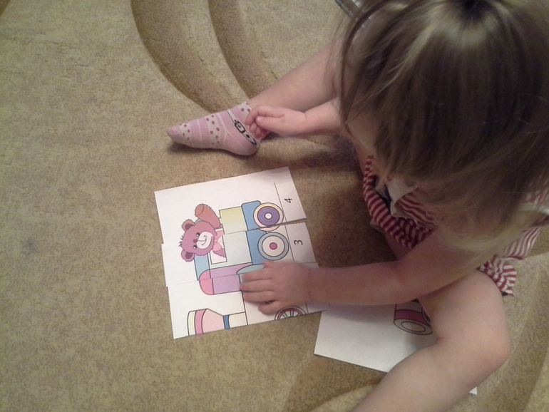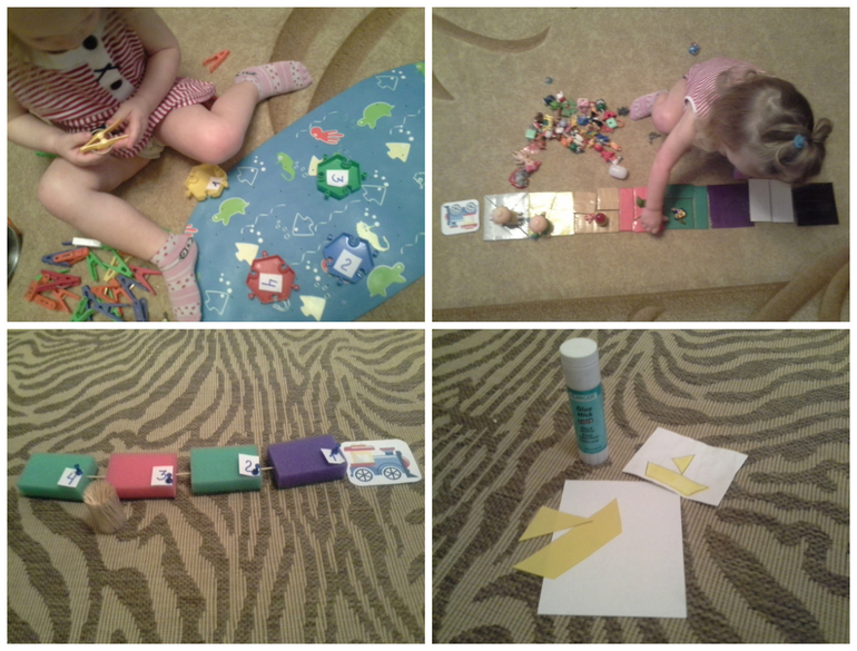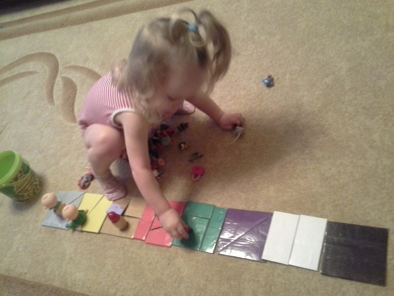 И вот такую игру предложила. Делала сама,объясняла принцип. Ульяна наблюдала