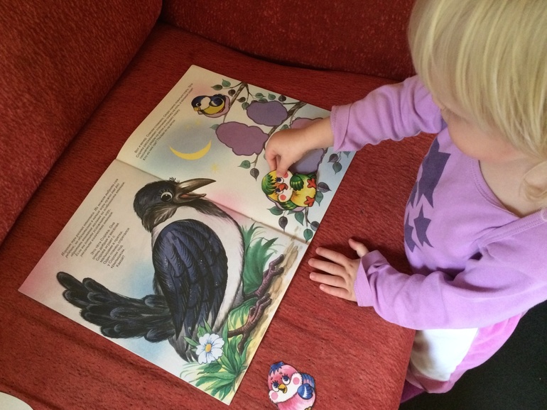 - Настя получила еще одну книжку в подарок, в этот раз из серии "Мультсказка": "Как цыпленок голос искал", сразу стала хитом.