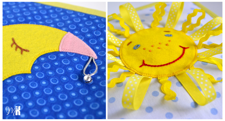 Мягкое солнышко весело улыбается, лучики можно теребить, считать, искать одинаковые.![]()