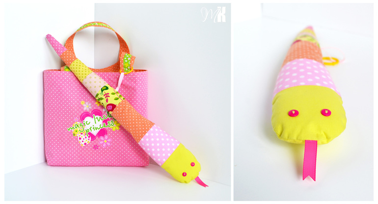 Сумочка для книжки и игрушка: полосатая змейка (в кончике хвоста - звенит бубенчик)![]()