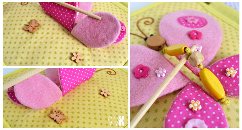 Усики подвижны - теребим, двигаем бусины по лапкам, считаем пуговки, божьих коровок.![]()