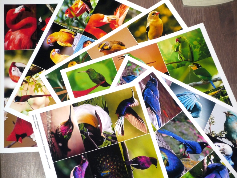 Вот такие красивые карточки у нас вышли из моей затеи и бессонных ночей! Сложновато было найти цветы и птиц некоторых цветов, но я очень очень старалась!