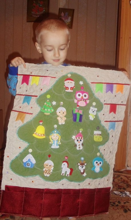 Елочка-панно. Размеры 76*55 см на 14 игрушек.