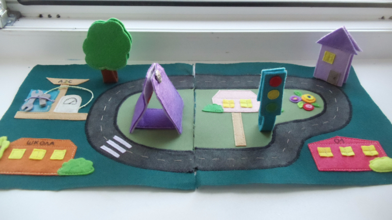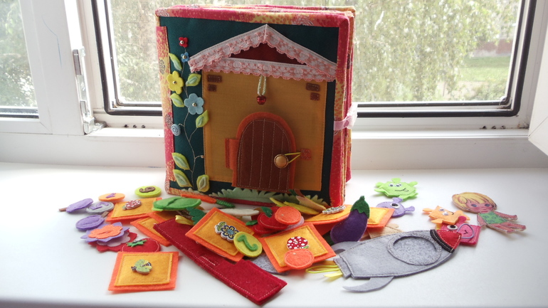 Дошила еще одну книжечку. Очень мне нравится. Кроме развивающих моментов много и игровых. Как всегда застежки, липучки, кнопочки, пуговки, звоночки, счет и многое другое)))