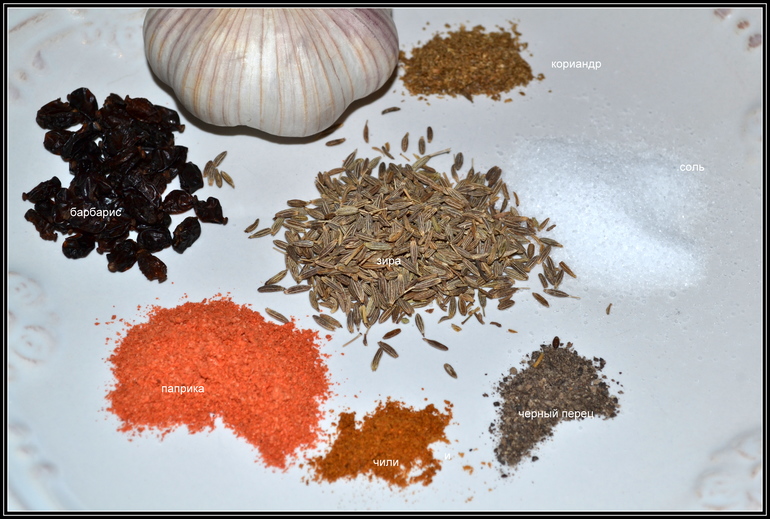 В чашу мультиварки налить 2 ст. ложки растительного масла, положить слоями мясо, лук, морковь и рис, посередине вдавить головку чеснока, смешать специи и посыпать рис