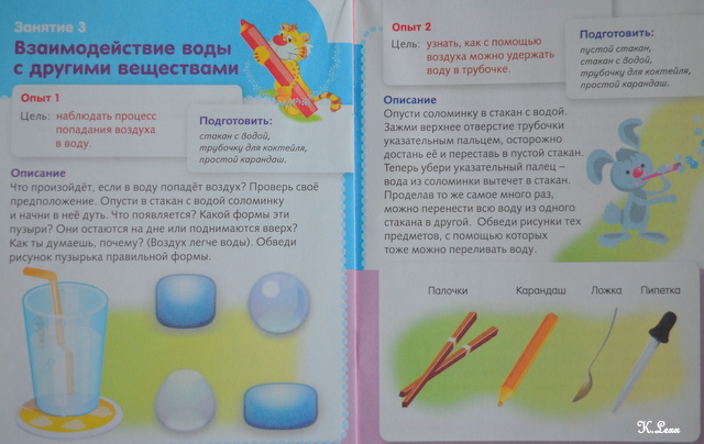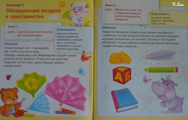 А еще, на каждой странице есть пояснения, как провести тот или иной опыт с воздухом и водой: