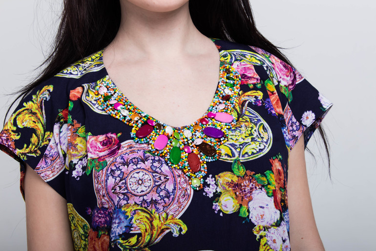 Модель №9. Туника, расшитая камнями. Очень яркая и оригинальная. Под пояс. Для заказа доступен цвет как на модели, дополнительные цвета внизу поста (кроме цветного шифона).