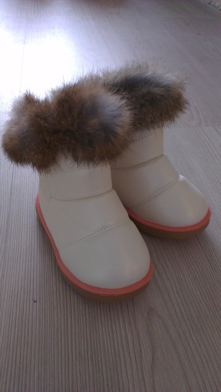 Девченки,заказывала моей малышке по интернету,но размер пришел нам впритык.. По внутренней сткльке 14 см. Сапожки красивые,белые,с мехом кролика. Цена:1190р