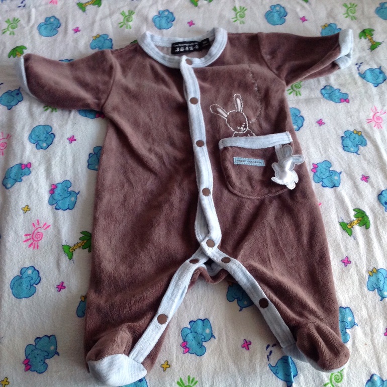 Коричневый велюровый Французской фирмы, одевали 1 раз а выписку- размер 1 месяц