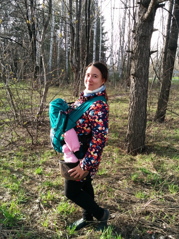 Теперь о рюкзаке: он супер удобный! Все предусмотрено и капюшон, чтобы никто на ребенка не глазел, когда он спит, и всякие затяжки, которые позволяют удобно настроить положение, и, конечно же, супер пояс, который распределяет нагрузку на все тело. За час я не устала вообще. К слову сказать, совсем недавно я, в силу необходимости, ходила с Олей в слинге к врачу. Так вот, за час я ощутимо утомилась. А тут - ничуть. И, несомненный плюс - рюкзачек просто очень красивый! Анна творит чудеса))