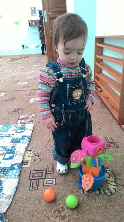 * В студии развития делает много всего: собирает квадратную пирамидку, засовывает ежиков в коробочку через узкое отверстие, рисует (пока чуть-чуть) каракули и еще много чего делает, чего не опишу :)
