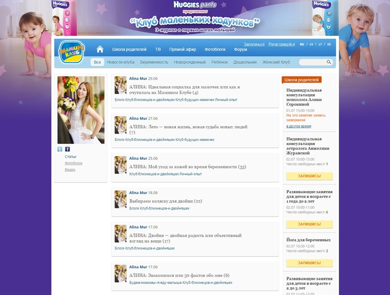 babyblog.ru - всем хорош. Здесь очень много крутых мам блогеров, которые собственно и вдохновили меня на создания своего блога. Очень сильная тут оказывается поддержках для тех, к кому аист отказывается лететь. Лёгкий интерфейс, где легко можно найти интересующую тебя тему. Начиная с того как наладить ГВ, заканчивая как сделать ремонт:) Одно - НО. Ресурс всё же больше для российских мамочек. Мало тут мамочек из Латвии, да ещё и активных. Информация зачастую является неактуальной только в силу географической разницы. Но я всё равно люблю тут посиживать.