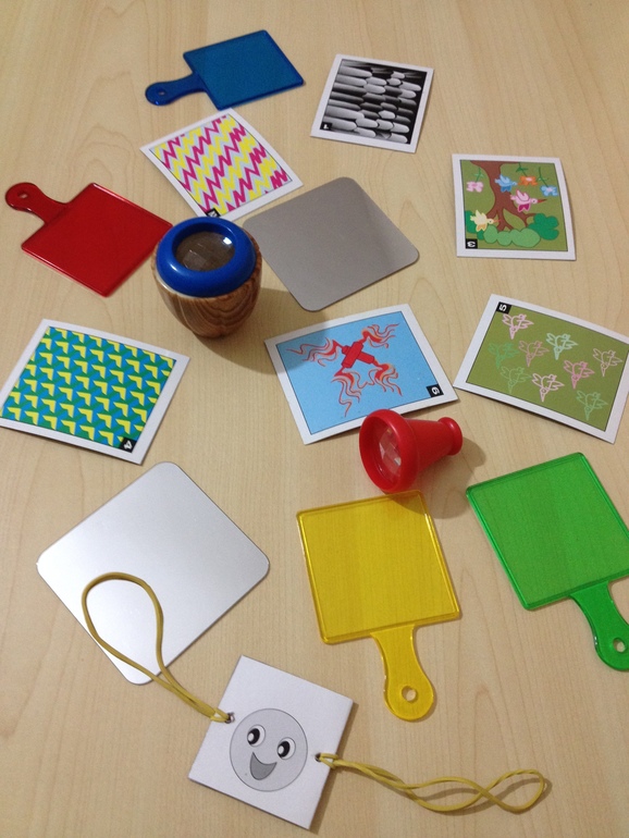 А вот наш наборчик для наблюдений для призмы (не для продажи, но карточки в скором времени отсканирую и выложу в общий доступ;-), чтобы и Вы могли понаблюдать при наличии любой призмы у Вас дома с Вашим малышом (собственно, через призму можно смотреть не только на эти карточки, в принципе смотреть можно на любые предметы, картинки волшебные получаются:-)ну, все вы это из детства знаете;-):
