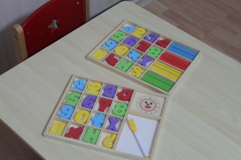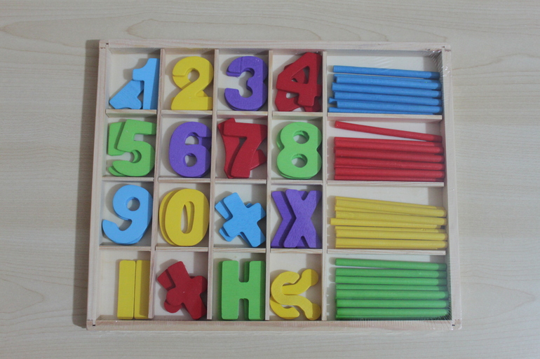 В наличии. Набор счетного материала из дерева, номер 2 (с палочками) и Набор счетного материала из дерева, номер 3 (с доской для рисования). Каждый набор 390 руб.