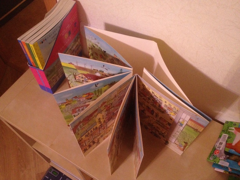 В наличии (только зима, весна и лето). Не очень дорогой китайский вариант сезонных книг-гляделок (Бернер) хорошего качества. Он отличается от привычных нам книг - раскладывается длинной "простыней", мне это показалось очень удобным, легко проследить последовательность изменений от странице к странице. Цена за одну книгу 450₽.