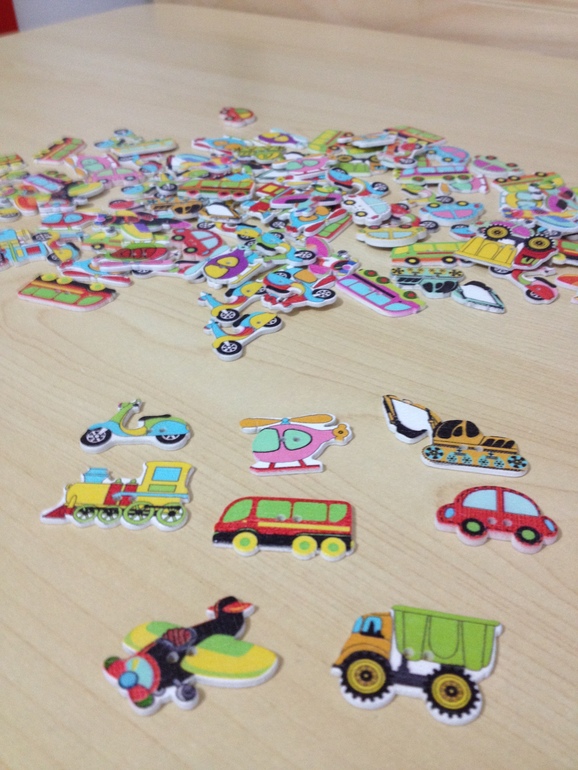 В наличии. Пуговки "Транспорт";-) для творческих игр, 1 наборчик из 7 шт. (в 1 наборе идет 7шт. пуговок с 6 видами транспорта) 45 руб