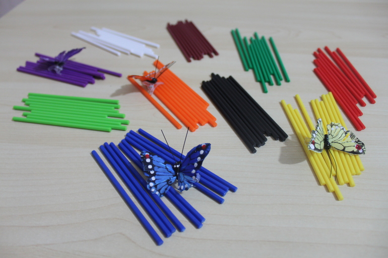В наличии, отличные! Палочки пластиковые, шестигранные, набор 50 шт. (5шт. каждого цвета, всего 10 цветов) - 240 руб.![]()