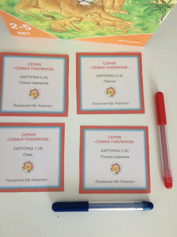 1 карточка: семья, 2-я карточка: самец, 3-я карточка: самка, 4-я карточка: детеныш.