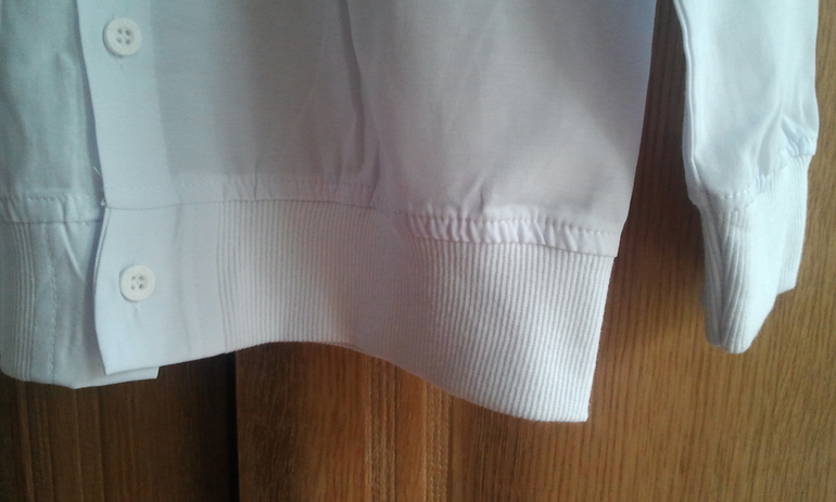 Срочно продаю рубашку стильную с трикотажными манжетами и трикотажной резиночкой по низу рубашки, рост 152 (на этикетке) от 146 думаю будет идеально....(я с размером не угадала)