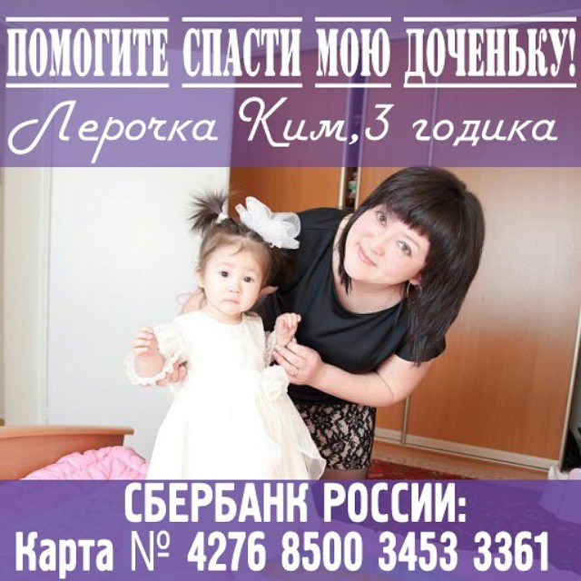 Не обижайте,люди,матерей,упавших перед Вами на колени.Просящих милостеню для больных детей...Не посылайте вслед им обвинений! ПОВЕРЬТЕ,НЕЛЕГКО У ВАС ПРОСИТЬ! ДУША БОЛИТ И СТОНЕТ ДЕНЬ И НОЧЬ....но подскажите -КАК ЖЕ МАМЕ БЫТЬ,КОГДА РЕБЁНКУ НЕКОМУ ПОМОЧЬ? А он любим..ДО БОЛИ И ДО СЛЁЗ! И снова мама плачет у иконы..ЧТО ДЕЛАТЬ ЕЙ,-ответьте на вопрос, КОГДА ЛЕЧЕНИЕ СТОИТ МИЛЛИОНЫ? Не обижайте,люди,матерей-Они итак достаточно страдают! СМОТРЕТЬ НА МУКИ,БОЛЬ СВОИХ ДЕТЕЙ...ТАКОГО НИКОМУ НЕ ПОЖЕЛАЕШЬ! РЕКВИЗИТЫ ДЛЯ ОКАЗАНИЯ ПОМОЩИ: *********************************** СБЕРБАНК РОССИИ: Карта № 4276 8500 3453 3361 ВТБ 24 Карта №4272290391873163 КИВИ КОШЕЛЕК +79147561127 ЯНДЕКС 410012643628244 МЕГАФОН - 89244840295. БИЛАЙН - +79621536595 (можете помочь отправив СМС на номер: 7878 с текстом: 9621536595 500 где 500 сумма перевода) Пей - пал: leeirina80@yandex.ru Размещение в "Поможем всем Миром" - http://vk.com/blagotvori =wall-27655043_70820 Группа помощи - http://vk.com/club79789693 Реквизиты - http://vk.com/topic-79789693_31110901 Документы - http://vk.com/album-79789693_211618855