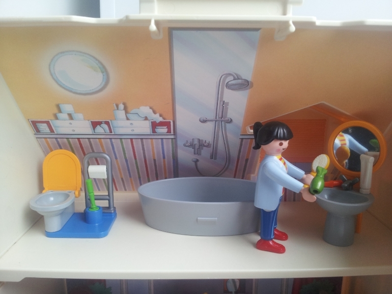 К сожалению, в процессе игры немного пострадала фигурка папы, трещина на руке. Могу заменить на фигурку мужчины в плавках.