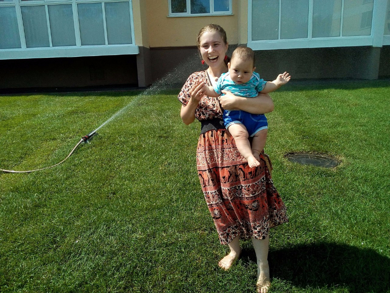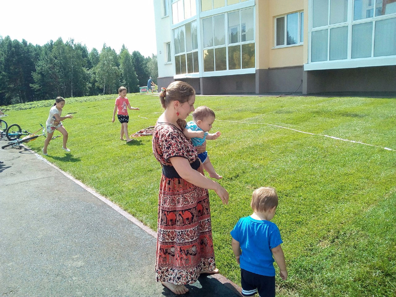 Отчет по развитию мамыБосиком по горячему песку? Запросто! Через узкую тропочку к зеленой травушке? Да, легко! Под искрящие радугой капли разбрызгивателя, поливающего свежий газон, ковриком улегшийся вокруг дома? Можем, умеем, практикуем!