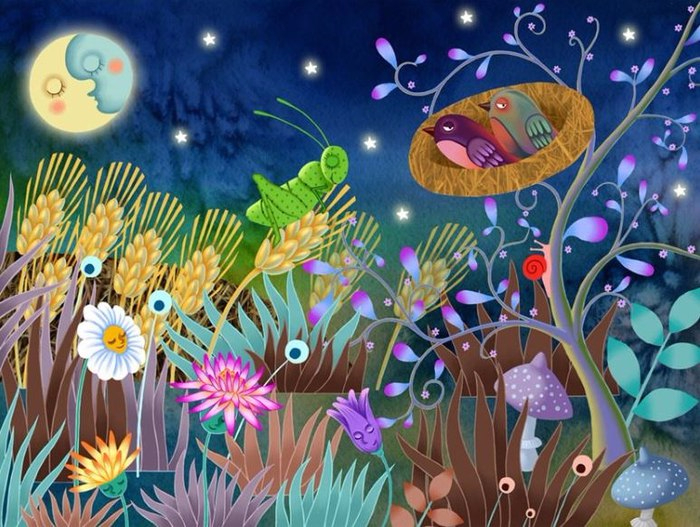 Отдельным этапом в искусстве перехода к миру снов является освоение ребенком самостоятельного засыпания, когда дитя лежит рядом с мамой - в кроватке ли, или на диване - но не на маминых руках. Здесь умение соткать сон для ребенка словами, мелодией, мыслями - обретает первоочередное значение. Маме уже подросшего ребенка приходит в помощь сказительный дар. Сказки рождаются из всех возможных подручных "искорок" бытия, видимых детскому глазу: деталей пройденного дня, прочитанных уже сюжетов, наполняющихся новым смыслом при каждом отдельном воспроизведении (о, сколько совершенно разных Колобков укатилось у нас с сыном в дремучие леса воображения за последние месяцы!). Ребенок погружается в воссозданный материнским голосом мир, постепенно ныряя на глубину сонной грезы, где его подхватывают течения сновидений.