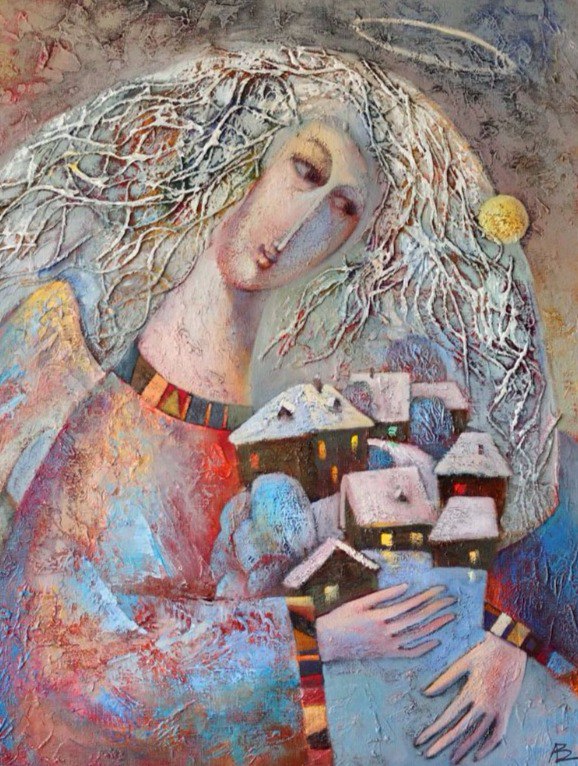 Вот, скажем, картина - можно ведь сказать, что женщина рисует пространство вокруг себя - свой Дом. Она тщательно подбирает нужные оттенки, раздумывает над деталями, замирает с кистью вдохновения в руке, задумчиво поправляя выбившуюся прядку… Но картина имеет финальный штрих, после которого становится статичным произведением, а творческая работа над своим гнездом непрерывна и безгранична. Сегодня так хочется уюта и мягкости красок: хозяйка заботливо достает клетчатый плед, укрывая постель, подбирает льняные однотонные занавески и абажур-колокол в ретро стиле. А завтра - настроение Дома меняется, и приходит пора раздвинуть плотные шторы, оставив легкомысленную вуальку с гирляндой из бумажных бабочек, накинуть на диван цветастое покрывало, например, с бирюзово-оранжевыми розами (или сине-лиловыми драконами, почему нет?).