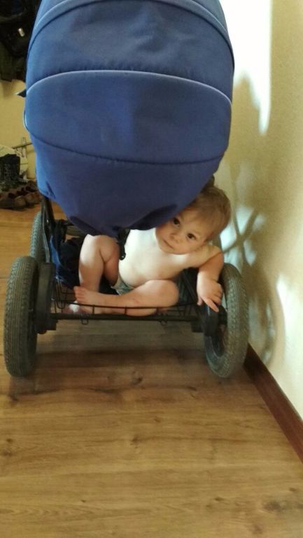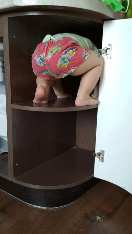 Дважды на неделе "теряла" дома ребенка - только слышно, что пищит, возмущается где-то... Мастер освоения пространства :-) Осталось научиться обратно выбираться!