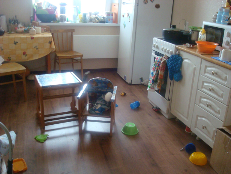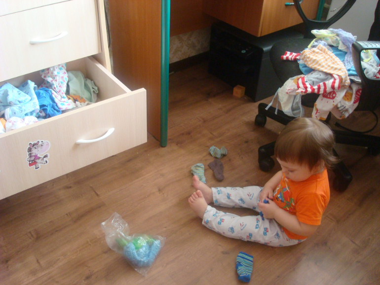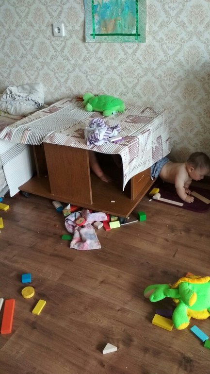 «Конек» сына - уборка, тут ему точно нет равных… Деловито вытаскивает все из ящиков, в какие только может добраться, после чего содержимое с похвальным рвением распределяется по поверхностям. Ровным слоем. Часть преданно приносится маме и торжественно вручается по одной вещи, будь то комбинезон Олежки, штука для закатывания банок или папина зубная щетка. А мама в это время, скажем, кормит младшего брата и спешно придумывает, как бы так уберечь Лежку от этих самых объектов бурной Димкиной деятельности (водружаемых в миллиметровой близости от незащищенной головенки). Отдельного внимания заслуживает Димина любовь к щетке от пылесоса и венику - с ними ребенок может ходить по дому полчаса (даром, что от включенного пылесоса Дима старается держаться дальше, чем кот от воды).
