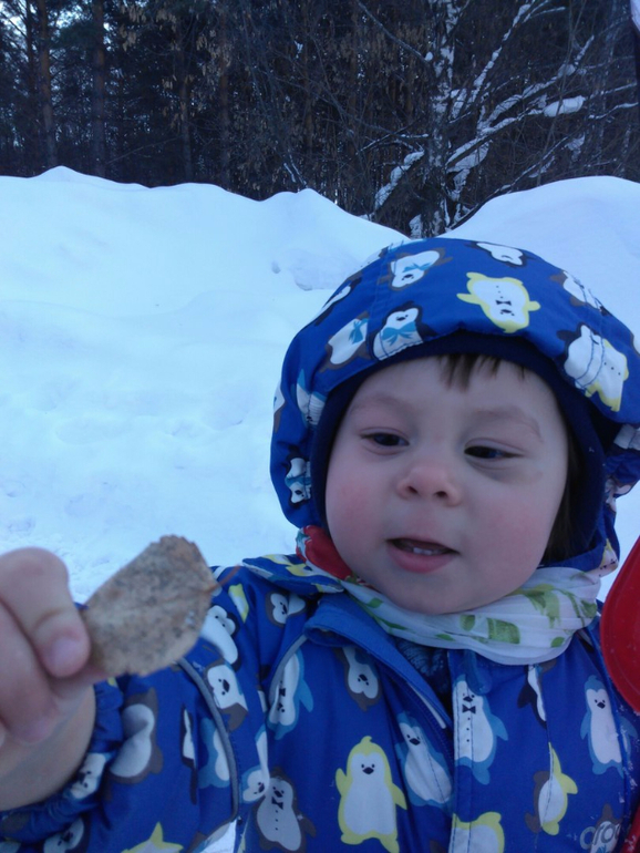 «Видишь, Дим, это лес. Там, где много деревьев. Лес - это дом для животных и птичек. Слышишь как поют птицы? И ворона: «Каррр, каррр…» А это сосна скрипит - слышишь? «Трррррр…» А там далеко живет зайчик, лисичка, медведь и волк. На снегу старый сухой листочек - он упал с дерева - «пам» - упал и лежит на снегу.