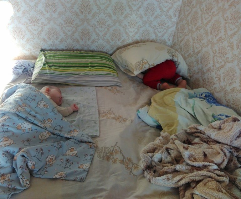 А Дима уже сладко посапывает из-под подушки... Стоя на четвереньках. Час уже почти так спит, чудушко в перьях...