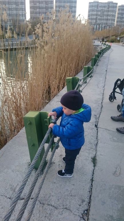 По дороге увлекается местной инфраструктурой. Купили красовочки,вроде стал бегать и на улице тоже. А то прям ни в какую.