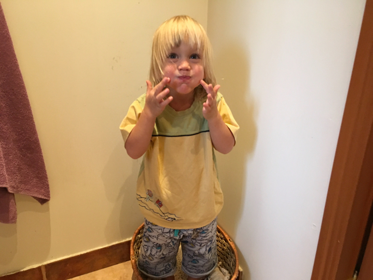 Странный режим дня сформировался у нас за последние пару месяцев. Живем по европейскому времени - спим до 11.00, в 15.00 обед, в 15.30 дневной сон, можем легко продрыхнуть до 18-19.00, затем полдник (он же ужин) и стабильная чаще трехчасовая прогулка до 22.00. Раньше 23.00 лечь не получается, по всей видимости дело идёт к отказу от дневного сна. Вот тогда начнётся самая веселуха)