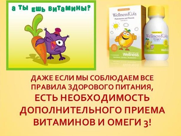 "Открывая и познавая мир, ваш малыш интенсивно растет и развивается, поэтому его организму требуется гораздо больше полезных питательных веществ, по сравнению со взрослыми. Анализируя ежедневный рацион детей разных возрастов, мы пришли к выводу, что он содержит недостаточное количество витаминов и жирных кислот ряда Омега-3, поэтому очень важно дополнять питание витаминно-минеральными комплексами и полиненасыщенными жирными кислотами, чтобы ваш ребенок рос здоровым и развивался гармонично"