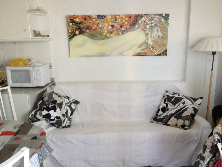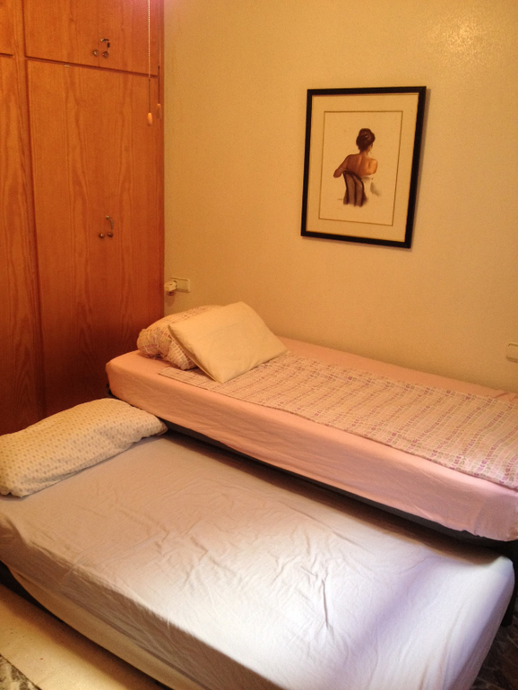 В другой спальне - 140-сантиметровая кровать. В столовой диван, из-под которого тоже выдвигается еще одно спальное место. В апартаменте установлен мобильный кондиционер. В апартаменте из окон одной из комнат есть боковой вид на море. Интернет Wi Fi с хорошей скоростью по желанию оплачивается дополнительно (12 евро за неделю).