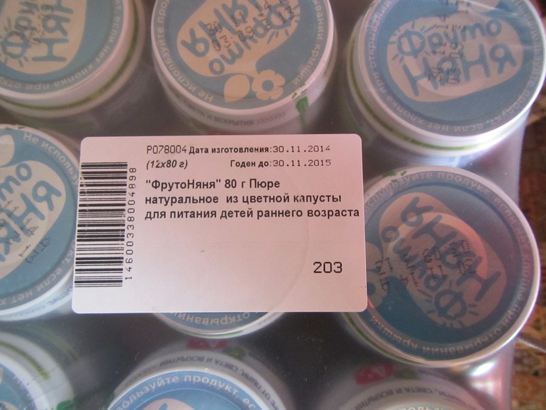 Детское пюре фрутоняня "цветная капуста" -72 банки + 12 банок говядина с морковкой в подарок. Срок годности в норме. Самовывоз. Зеленоград. 600 руб.