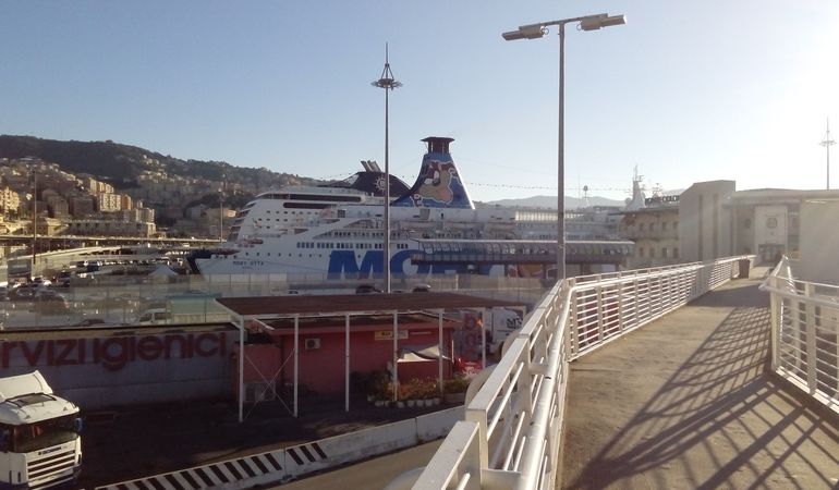 До Генуи добирались паромом. Билеты покупались заранее с каютой на 2 человек + ребенока без места, так как переезд ночной, хотелось спать с комфортом. А вообще люди едут по-разному: кто-то надувает двухспальный матрас прямо на лестнице, кто-то укладывает ребенка спать на полу под столиком сидячей зоны, кто-то сидит в баре всю ночь, кто-то ложится в спальных мешках в коридоре…